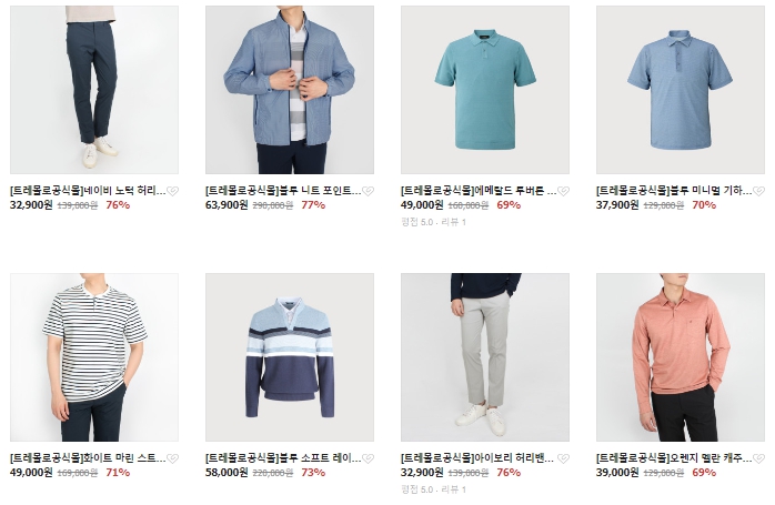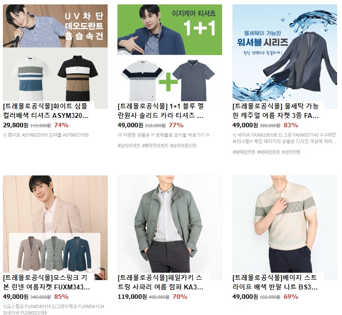 클래식하지만 지루하지않는 디자인들로 가득한 이곳은 40대 남성의류 쇼핑몰인 트레몰로입니다.