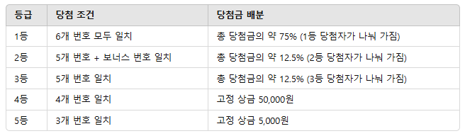 로또는 당첨 번호와 본인이 구매한 복권 번호의 일치 개수에 따라 당첨 금액이 결정됩니다.